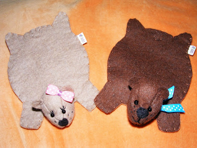 | Gizella és Manfréd, a két gyapjúfilc poháralátét maci |